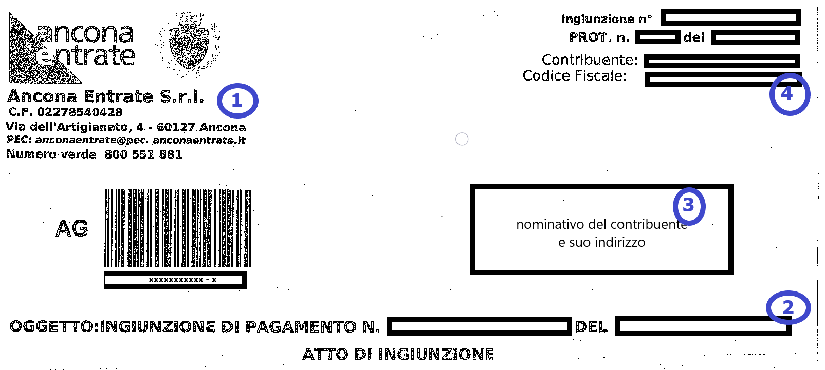 Nella prima pagina dell’ingiunzione fiscale sono riportati in particolare (Fig. 1):